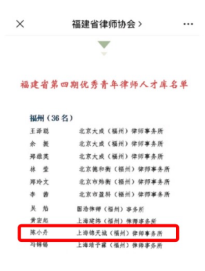 團(tuán)隊(duì)陳小丹律師入選福建省第四期優(yōu)秀青年律師人才庫(kù) 律師展示, 福州律師資訊發(fā)布者 福州律師網(wǎng)2020年7月30日為加強(qiáng)青年律師隊(duì)伍建設(shè),進(jìn)一步做好全省優(yōu)秀青年律師人才庫(kù)管理工作,2020年7月29日經(jīng)省律協(xié)常務(wù)理事會(huì)表決通過,福建省詳情