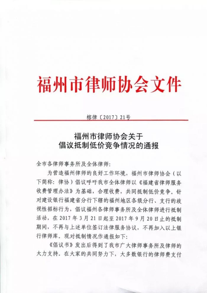 福州市律師協(xié)會關(guān)于倡議福州律師事務(wù)所及福州律師抵制低價競爭情況的通報 福州律師資訊發(fā)布者 福州律師網(wǎng)2017年10月13日福州市律師協(xié)會關(guān)于倡議福州律師事務(wù)所及福州律師抵制低價競爭情況的通報 . 福州律師網(wǎng)專業(yè)福州律師分享