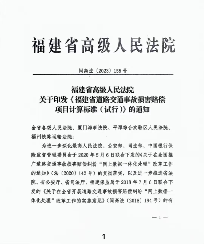 數(shù)據(jù)更新:最新2024年福建省交通事故人身?yè)p害賠償標(biāo)準(zhǔn)(含計(jì)算依據(jù)) 交賠人損, 辦案手記, 辦案數(shù)據(jù), 地方法規(guī), 福州律師辦案必備發(fā)布者 福州律師網(wǎng)2024年4月2日根據(jù)國(guó)家統(tǒng)計(jì)局福建調(diào)查總隊(duì)于2024年3月14日發(fā)布的2023年福建省國(guó)民經(jīng)濟(jì)和社會(huì)發(fā)展統(tǒng)計(jì)公報(bào),結(jié)合《最高人民法院關(guān)于詳情