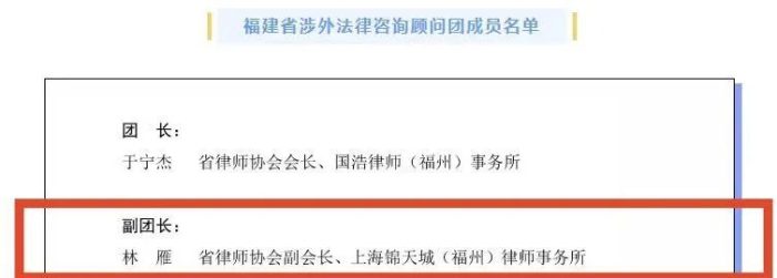 錦天城福州分所律師成功入選福建省涉外法律咨詢顧問(wèn)團(tuán) 福州律師資訊發(fā)布者 福州律師網(wǎng)2025年6月23日近日,省司法廳和省律師協(xié)會(huì)共同成立“福建省涉外法律咨詢顧問(wèn)團(tuán)”,集合全省100余名優(yōu)秀涉外律師,發(fā)揮職能優(yōu)勢(shì)和專業(yè)水平,詳情