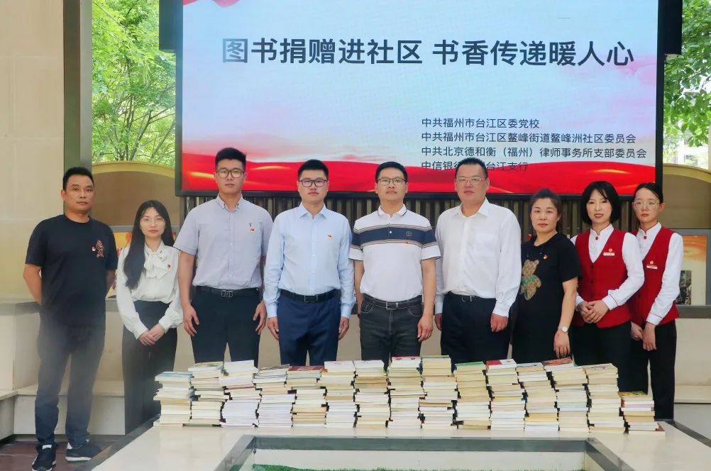 圖書捐贈進社區(qū),書香傳遞暖人心。為響應國家法治宣傳教育政策,推動社區(qū)文化建設和法律知識普及,2024年4月28日,中共福州市臺江區(qū)委黨校、中共福州市臺江區(qū)鰲峰街道鰲峰洲社區(qū)委員會、中共北京德和衡(福州)律師事務所支部委員會、中信銀行福州臺江支行在臺江區(qū)香開長龍社區(qū)舉行了一場書籍捐贈活動。