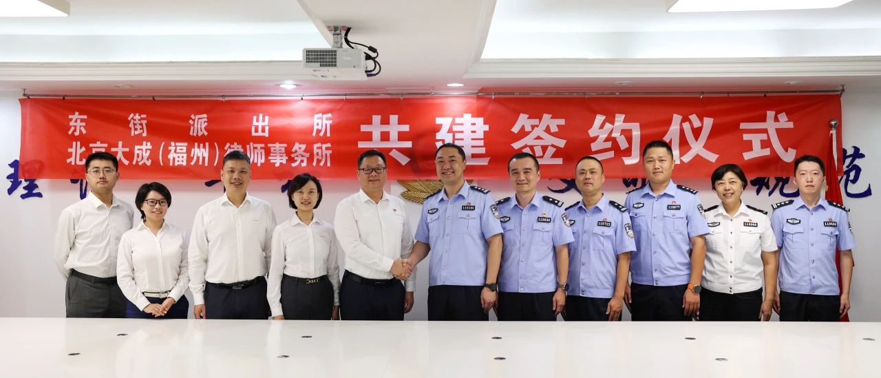 10月29日上午,大成福州與福州市公安局東街派出所“警律共建”的續(xù)簽儀式在東街派出所舉行。大成福州黨總支書記蔡亮與東街派出所所長陳興等領(lǐng)導參加儀式并座談。