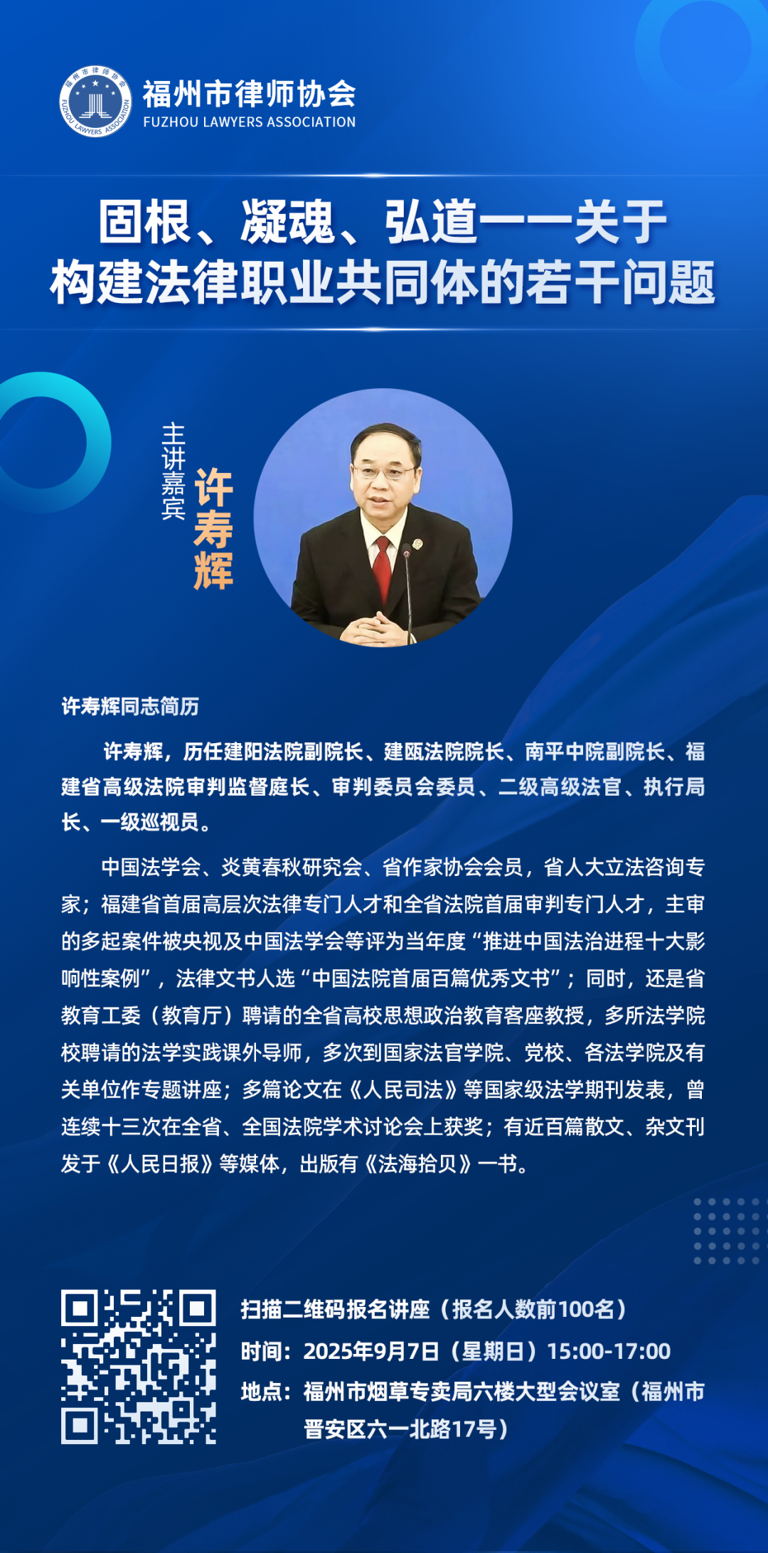 講座預(yù)告:福州律協(xié)舉辦“固根、凝魂、弘道——關(guān)于構(gòu)建法律職業(yè)共同體的若干問(wèn)題”講座分類: 福州律師資訊2025年9月4日 福州律師資訊 分享此文文章導(dǎo)航上一個(gè)上一篇文章以規(guī)范促發(fā)展 以合規(guī)筑根基——福州律協(xié)聯(lián)合倉(cāng)山區(qū)司法局成功舉辦律所規(guī)范化管理與建設(shè)主題沙龍下一個(gè)下一篇文章福州律師評(píng)析:別拿“包養(yǎng)”偽裝“嫖娼”!你眼里的贈(zèng)與款項(xiàng)實(shí)際可能是嫖資!相關(guān)文章福州律協(xié)舉辦“低空經(jīng)濟(jì)駛向未來(lái)——法律實(shí)踐與經(jīng)驗(yàn)分享”講座2025年12月5日福州律協(xié)“12·4”國(guó)家憲法日主題宣傳活動(dòng)圓滿舉行2025年12月5日福州律師代表隊(duì)在第四屆福建律師籃球賽暨第二屆啦啦操比賽中斬獲佳績(jī)2025年12月4日福州律協(xié)會(huì)員事務(wù)管理工作委員會(huì)召開(kāi)2025年度工作總結(jié)暨律師執(zhí)業(yè)年度考核工作培訓(xùn)會(huì)議2025年12月4日《人民法院報(bào)》頭版刊發(fā)錦天城福州律師事務(wù)所律師專題受訪報(bào)道2025年12月1日福州律協(xié)教育和培訓(xùn)工作委員會(huì)召開(kāi)2025年第三次全體會(huì)議2025年12月1日