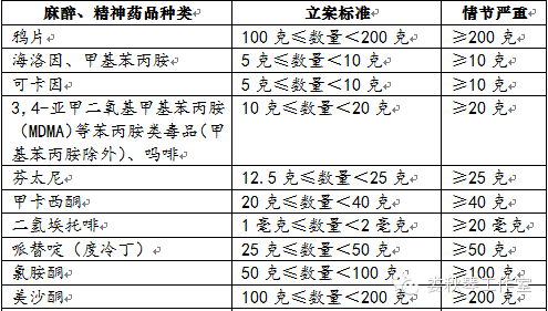 毒品犯罪數(shù)量標(biāo)準(zhǔn)一覽表(根據(jù)2016年4月11日新司法解釋制定)