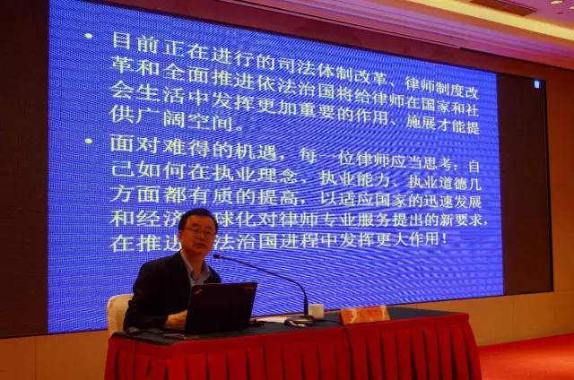? ? ? ?第三場,原中央司法體制改革領(lǐng)導(dǎo)小組辦公室副主任、中央政法委政法研究所所長,現(xiàn)天津大學(xué)法學(xué)院黃太云教授以“本輪司法體制改革的主要任務(wù)及試點推進(jìn)情況”為題做專題講座。他用大量司法實踐活動和豐富理論,用獨到的觀察視角和思考研究方式,進(jìn)行了深刻闡述,以審判中心主義的司法體制改革為切入點,探討對司法行業(yè)、律師行業(yè)的全面改革。為我們進(jìn)一步的探索和開展司法體制改革工作打開了新思路。