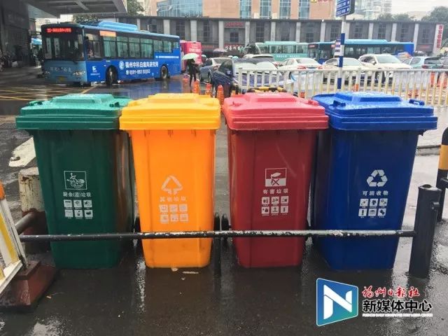 福州汽車(chē)北站內(nèi)的四色分類(lèi)垃圾桶已投放到位。(資料圖)
