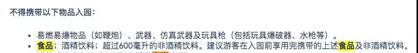 但從2017年11月15日起,上海迪士尼對(duì)入園游覽的游客須知進(jìn)行了調(diào)整,規(guī)定“不得攜帶以下物品入園:食品;酒精飲料;超過(guò)600毫升的非酒精飲料”,這與過(guò)去允許攜帶原始包裝、密封的、未開(kāi)封的及不需任何加工或處理即可享用的食品相去甚遠(yuǎn)。