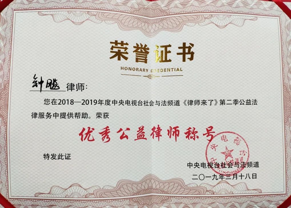 5位律師參與CCTV-12《律師來(lái)了》欄目錄制。鐘飚律師被該欄目授予“優(yōu)秀公益律師”榮譽(yù)稱號(hào)。