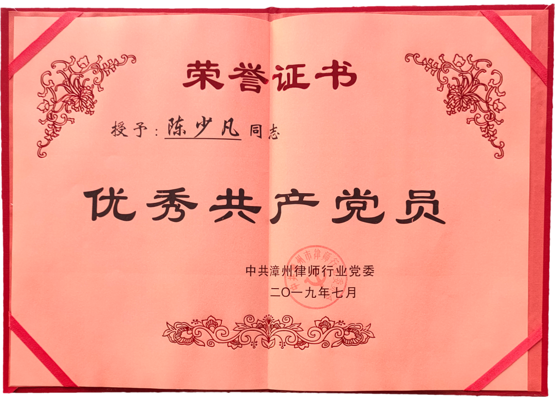 7、2019年7月獲“全市律師行業(yè)優(yōu)秀共產(chǎn)黨員”;