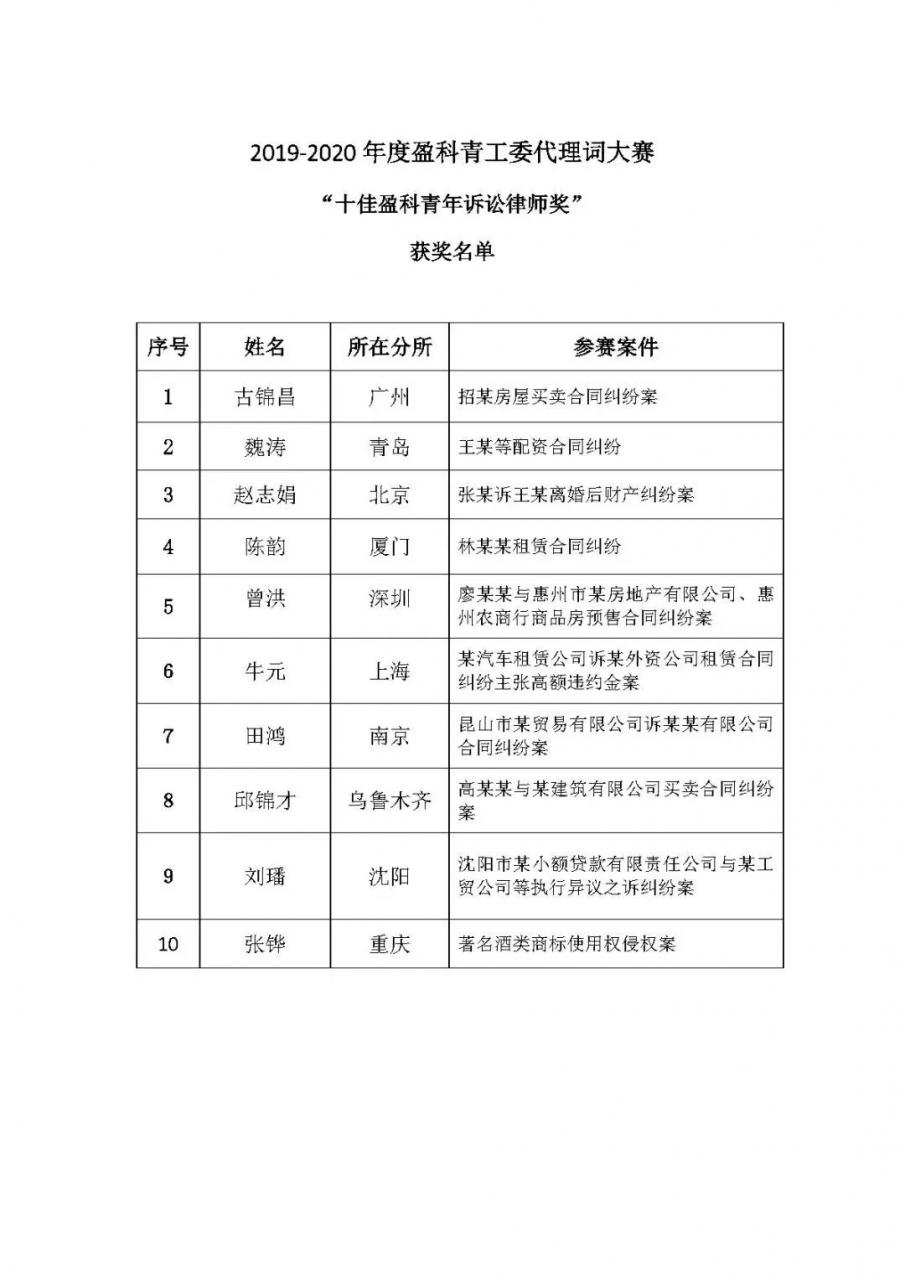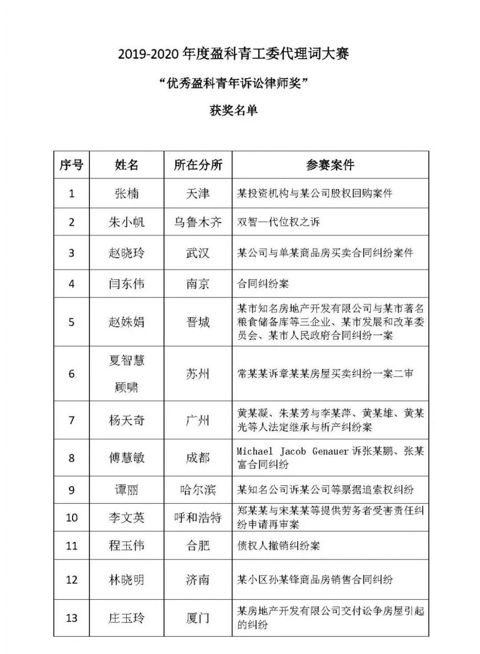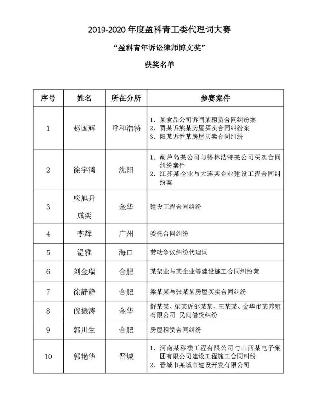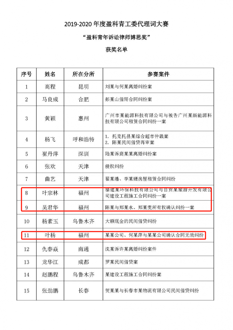 盈科福州律所五位律師上榜!”2019–2020年度盈科全國青工委代理詞大賽”獲獎名單新鮮出爐啦!