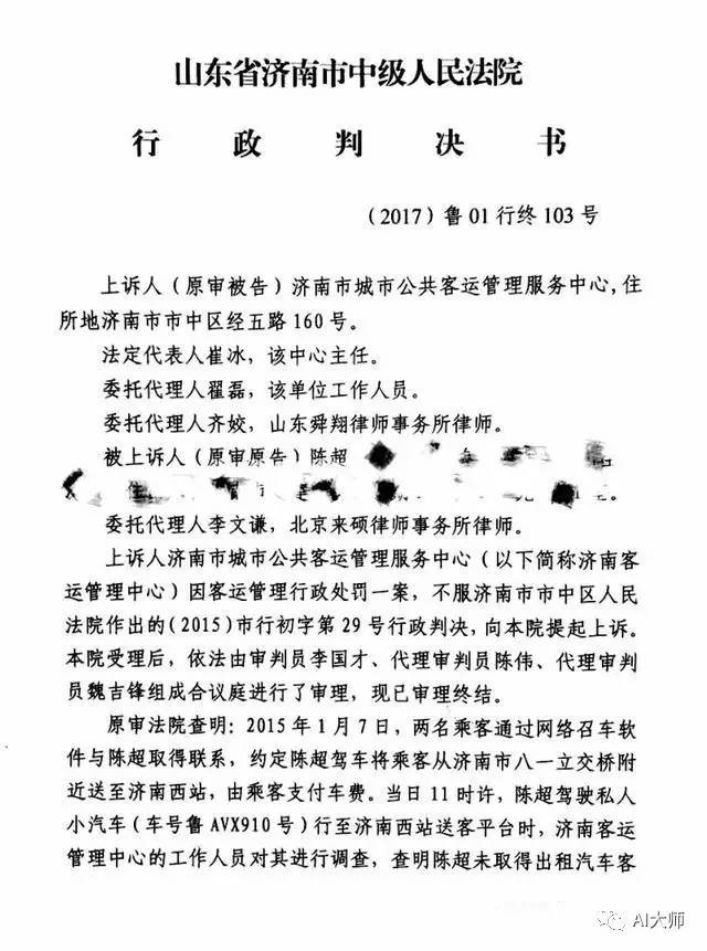 2月282017 “專車第一案”二審維持原判 “專車”司機(jī)勝訴(判決書全文)||福州律師推薦 法律綜合發(fā)布者 福州律師網(wǎng)2017年2月28日“專車第一案”二審維持原判 “專車”司機(jī)勝訴(判決書全文)||福州律師推薦 來源/新華社、AI大師(iNoHaze) 備詳情